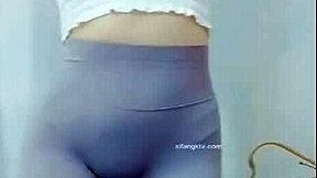 Hottest leggings try-on haul cameltoe with mysterious Kathy