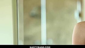 Ava Marina strips at 18, gets spanked, rides cock before ripping clothes for pussy play