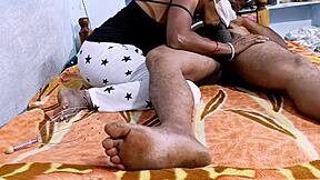 desihotcouple indian wife gives bedroom handjob blowjob and footjob close up