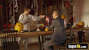 Horny Step-Daughter Lures Step-Dad to Bedroom for Halloween Fucking Fun