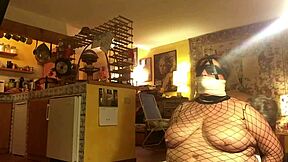 Bound bbw slut blindfolded whipped obediently sucks master
