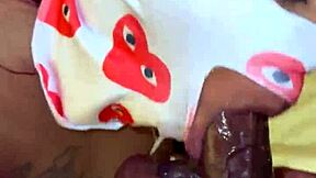 yo masked ebony slut gags deep on bbc spitting sloppily before rough facial blast