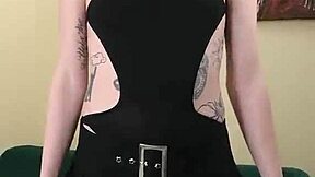 hey, kit summers rocks that tight black bodysuit gothic miniskirt look...