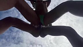 Hey, watch this blonde teen strip down at the beach!