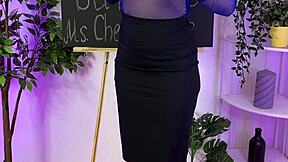 mature teacher in lingerie heels spanks curvy ass with buttplug