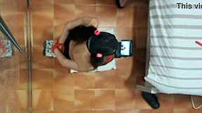 Deepthroat girlfriend on knees strips thong for homemade bedroom blowjob test