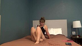 hey, horny latina neighbor walks in catching white guy jerking off on bed