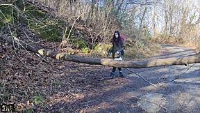 Sexy Brunette Sucks Cock Outdoor Cum?