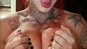 young teen with tattoos lets old guys cum on her while her cuckold films it