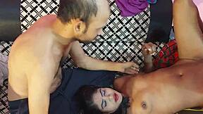 Bangladeshi couple explores tight pussy in missionary and riding threesome