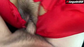 asian slut in red takes long cock deepthroat then creampie tight shaved pussy