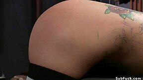 Brunette terikat tersedak kontol raksasa sebelum doggy brutal