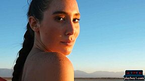 hey hot 18+ brunette teen willa prescott strips outdoors flashing big natural tits... damn!