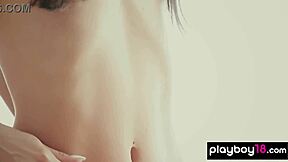 teen lil kimmy undresses and strokes her clit in russian striptease