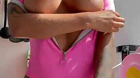 Monika Fox Strips Pink Bodysuit Revealing Shaved Pussy In Kitchen
