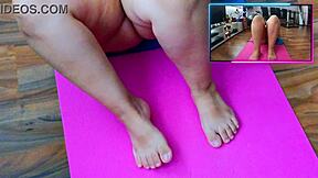 double cam spies curvy girl's fat ass pussy feet in barefoot yoga workout