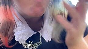 Alt milf smokes outback, chilling with her cigarette in the fresh air casually