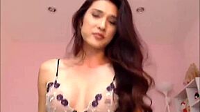 Beautiful brunette ladyboy shemale strokes her cock in solo jerkoff