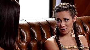 busty milf's pussy devoured by cute teen babe in lesbian mommy action