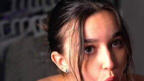 Petite Brunette Livilla Y Fingers Shaved Pussy Hard in Shower