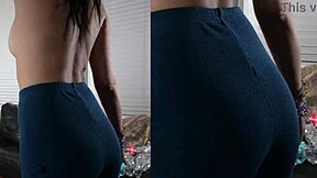 jazmin slips into leggings and wrap shirt for shoot