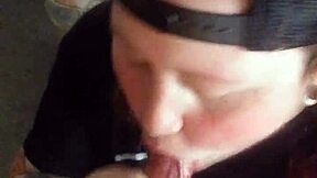 he flashes cock in garage and cute girl drops to suck and lick it deep