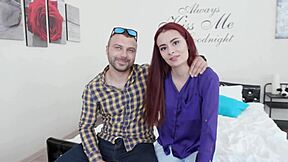 Hot shy brunette cheats on husband in front of him