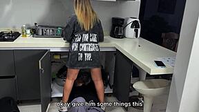 godson, is your cock hard watching your horny godmother fuck in the kitchen while hubby watches?