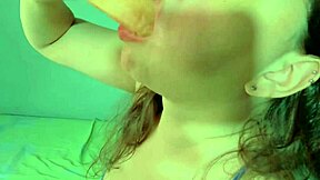 brunette teen in pajamas toys pussy to cum mouthful finish