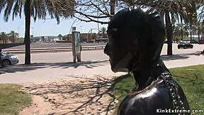 Blonde Bound In Latex, Teasing Outdoor Domination