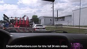 Bar pickup brunette strips bare in car ride home 12:57
