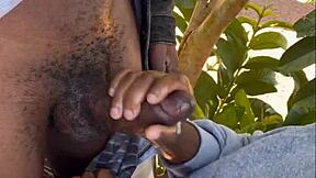 milf gives bbc handjob till he cums loads then latina joins for monster cock threesome orgasm