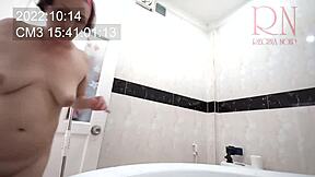 julia ann soaks her big natural tits and pussy lips in steamy shower tease