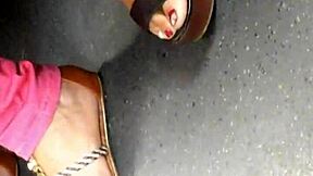Mature Woman Reveals Candid Feet in Hidden Wedges Sandals