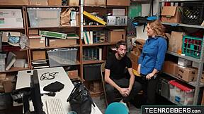 officer krissy lynn corners young thief and seduces him into rough office fuck