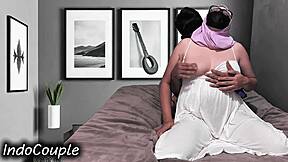 Can indo hijab wife take full creampie pounding while riding husband wildly?