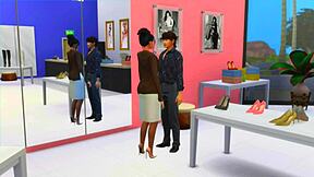 Shoe Store Cashier Threesome with Customers