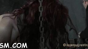 the beauty feels vulnerable in the cage with her hairless pussy exposed