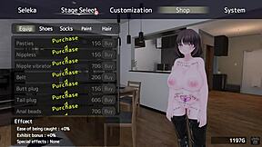 Exhibitionist slut prostitute masturbates dildo in clothing store humiliating publicly