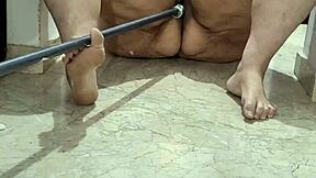 Mature Woman Pees On Kitchen Floor And Fucks Stick!