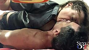 Wife dresses side guy as lady for wild bed fuck in hubby's room