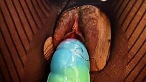 yo who's riding that bad dragon dildo close up on her hairy wet pussy with monster cock toy in sneakers