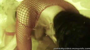 Exotisk dansare Lisa Rose i strumpbyxor straffar kuk med spermaspruta