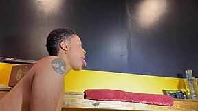 busty ebony bbw worker throats big black cock then rides rough interracial