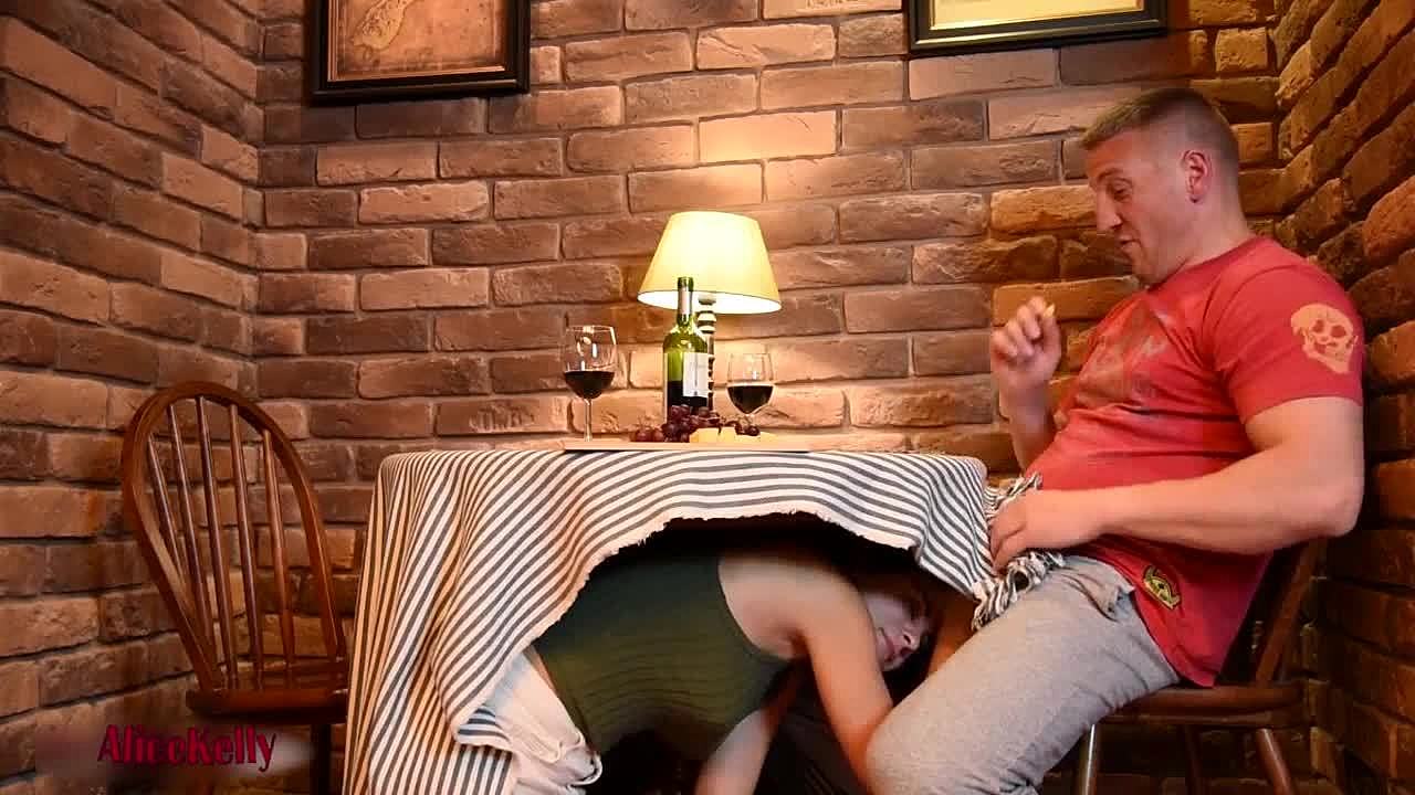 the cuckold distracts with business deals while i suck his partner's cock under the table