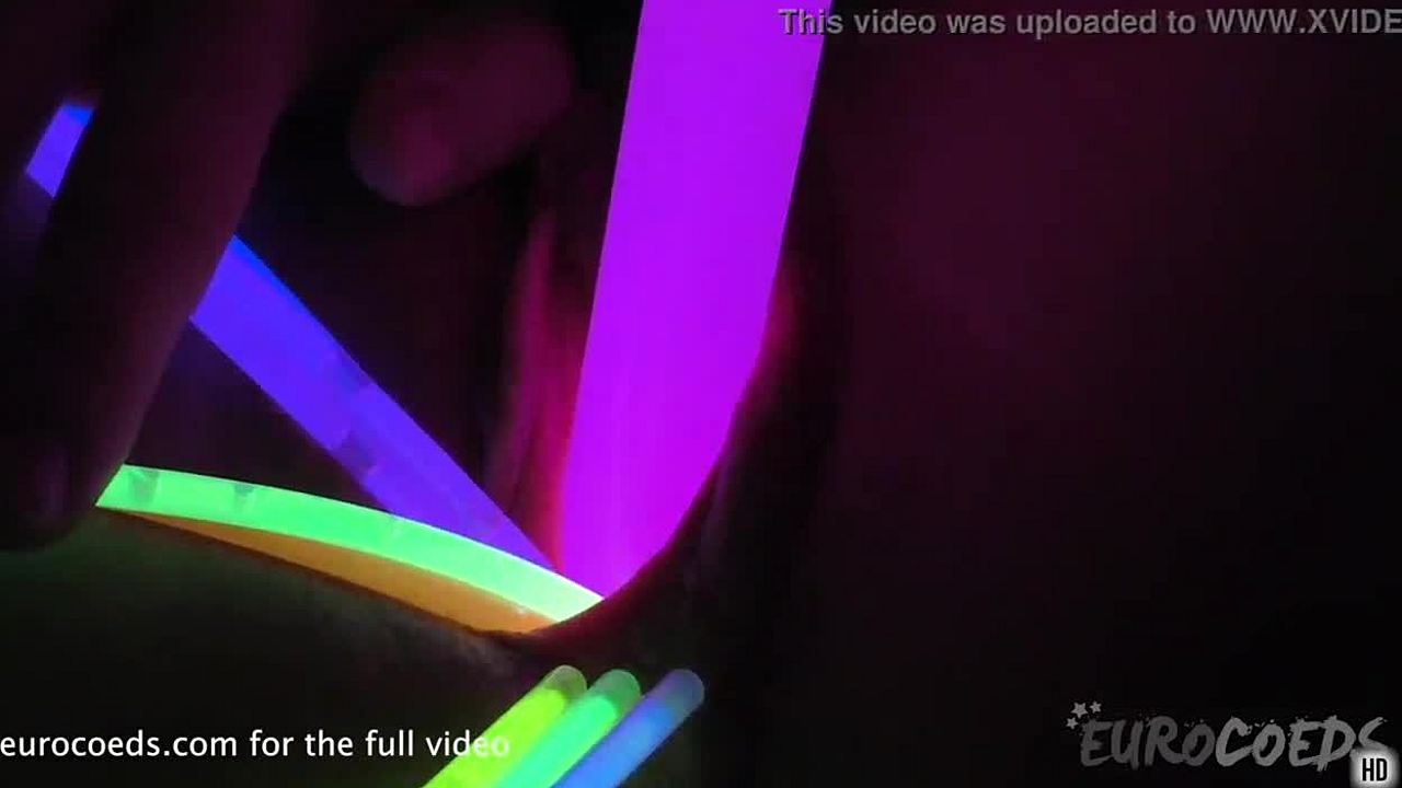 Feeling the Stretch: Beautiful Blonde Gapes Tight Pussy with Colorful Glowsticks in USA