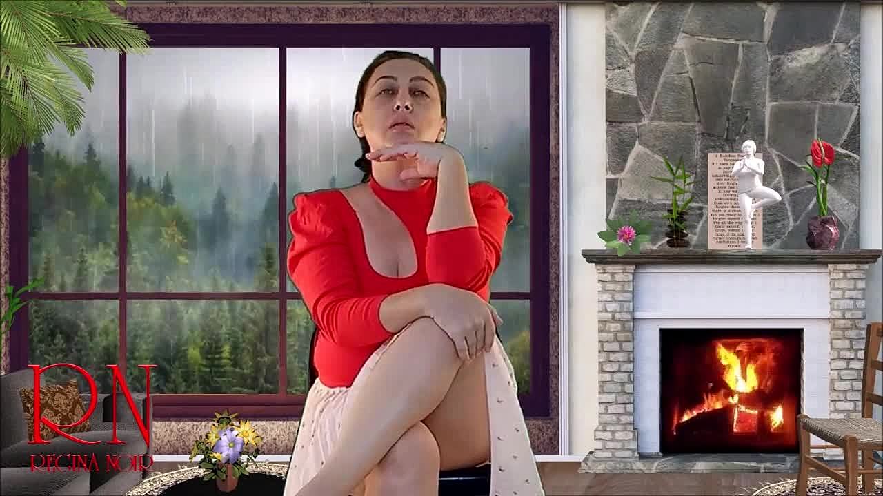 French Slut in Black Leather Pants Gray Satin Shirt Red Garter Belt and White Satin Thong Stockings and High Heels Doggy Style Fucking