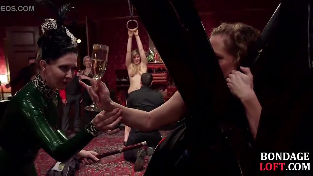 les domina rams chain sub in bound strapon bdsm group bondage fetish lezdom