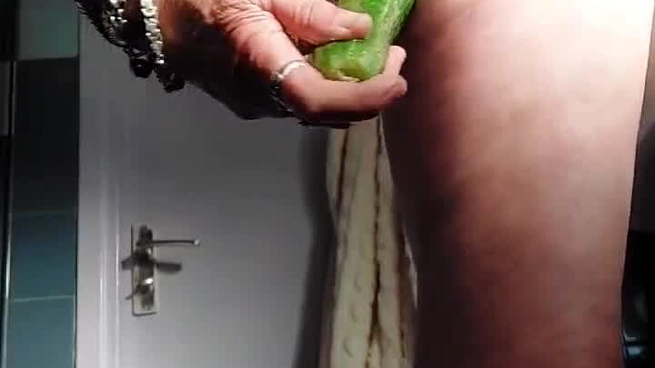 Vieille mamie remplit son trou poilu avec un concombre
